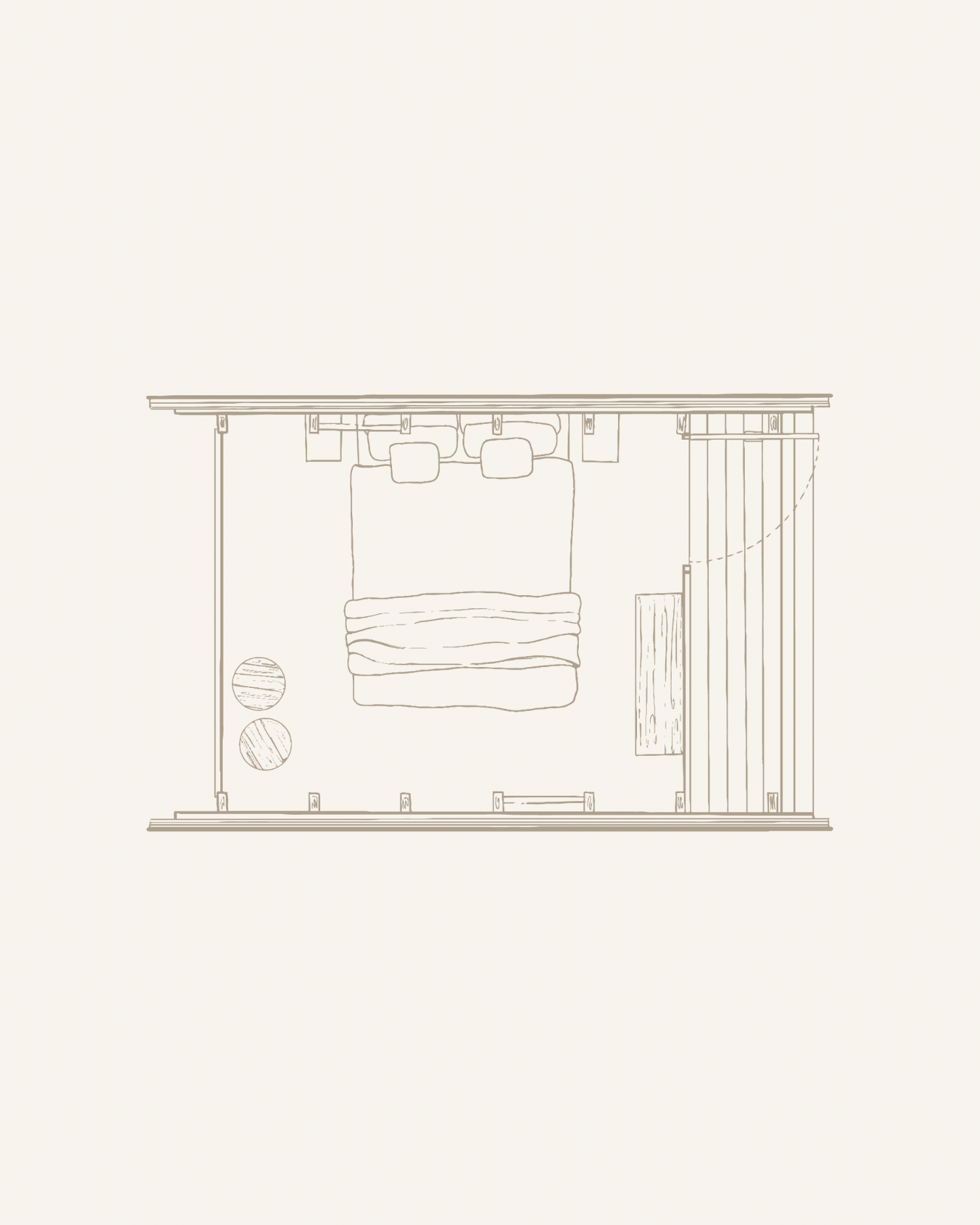 Hideaway North is our most minimalist and pet friendly forest cabin, created for guests seeking a simple stay shaped by nature and stillness. Designed with only the essentials, the cabin features a comfortable 140 cm bed and a large window opening to quiet forest views. There is no running water, no sauna, and no soak tub, allowing for a true back to basics rhythm where days unfold outdoors. Outside, a simple cooking setup and the surrounding forest set the pace for slow mornings, quiet evenings, and time spent fully present.
